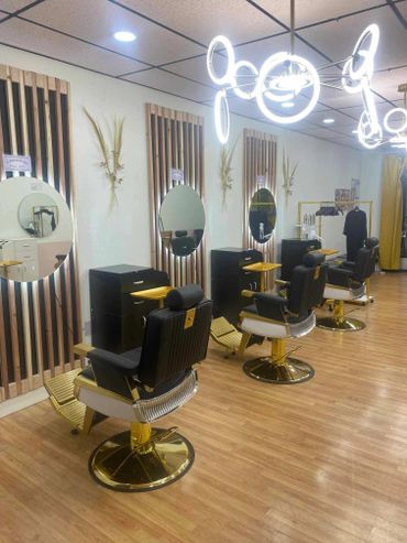 Fully equipped barbershop with premium chairs and modern interior. Ready for barbers.